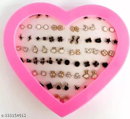 Set of 36 Pair Mix Design Earrings with Heart Box for Women and Girls (1 Box)