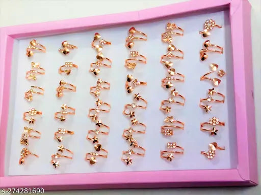 Pack of 36 Metal, Alloy Golden plated Rings for Girls, Women(1 Box 36 Rings)