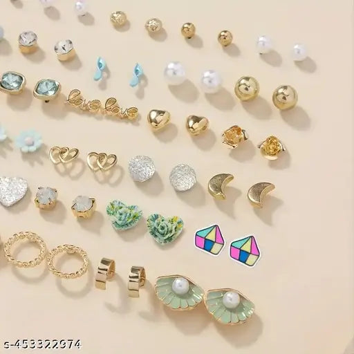 Girl For Women Gold Plated Multicolor Studs Combo of 30 Quirky Pairs