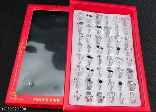 Pack of 48 Silver plated Rings with Mix design for Girls, Women & Ladies(1 Box)