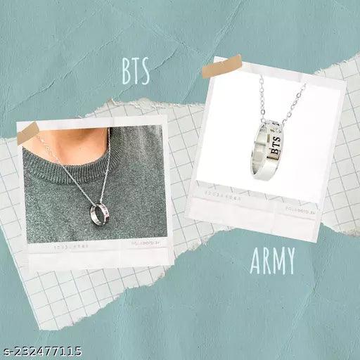 BTS Kpop Stainless Steel Ring Pendant Necklace with Chain for Men & Women