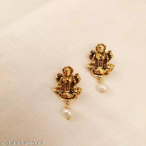 God Laxmi ji Jewellery Set 1 Necklace A Pair of Earrings for Haldi, Festive, Occasions- Red Green Colour
