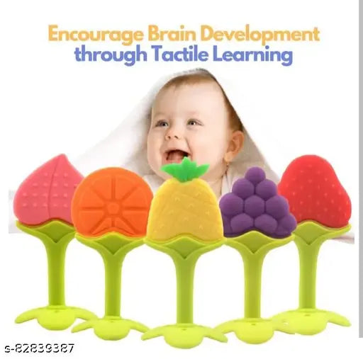 Set of 5 Soft Silicone Fruit Teethers Toys, Infant and Toddler