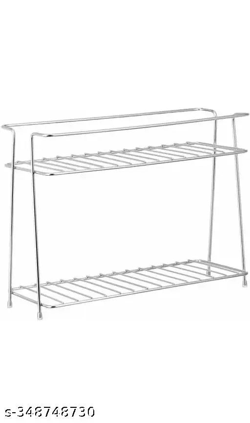 BHOLA STEEL Multipurpose Storage Organizer Stainless Steel 2 Layer Storage Organizer Rack for Kitchen Standing Rack Shelf Storage Holder Kitchen Rack/Spice Shelf/Kitchen Racks/Pantry Storage Organizer/Spice Rack Set for Kitchen/(Silver-Chrome)