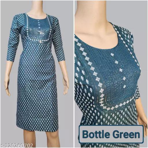 Womens Kurti Embroidery Work & Printed Teal Green Colour Straight Kurti