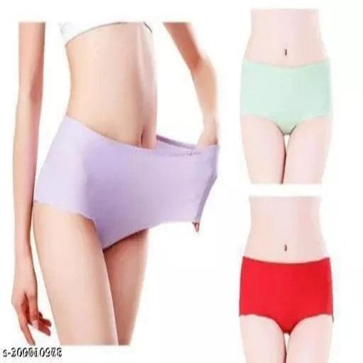 Pack of 3-Womens Ice Silk Seamless Panties Hipster Briefs Ladies Innerwear Medium Waist Soft and Breathable