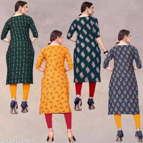 Women's Aline Straight Crepe Regular Fit Kurti (Pack Of 4 Pcs)