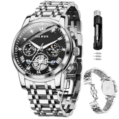OLEVS Mens Chronograph Watch Gold Silver Stainless Steel Chain Quartz Wrist Watches Business Dress Waterproof Luminous Date Watch