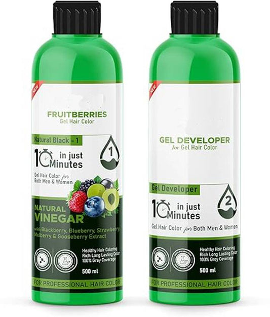 sivika Fruitberries Natural Black Long Lasting Professional Gel hair Color (500ml x 2) , Black