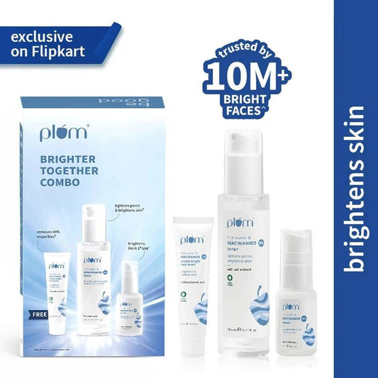 Plum Niacinamide Brightening Combo|Pack of Toner, Brightening Serum,Face Wash + Freebie (3 Items in the set)