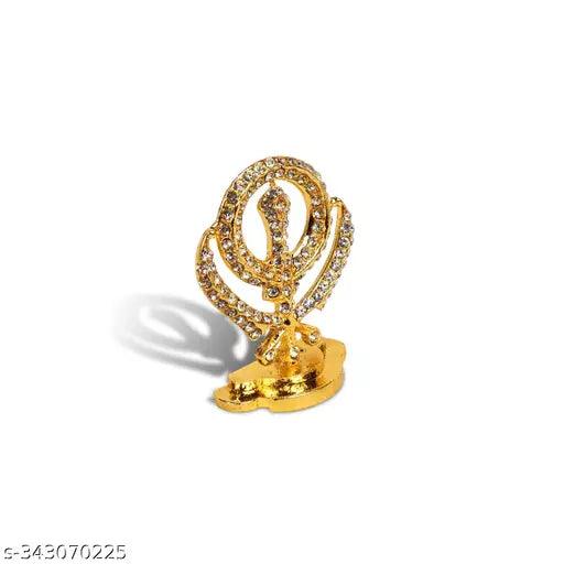 Khanda Kirpan Car Dashboard 1 Pc Sikh Symbol Showpiece Golden Metal Statue