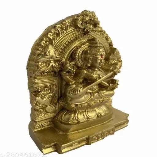Sri Saraswathi Statue Idol for Pooja Room -11cm (Gold Colour)