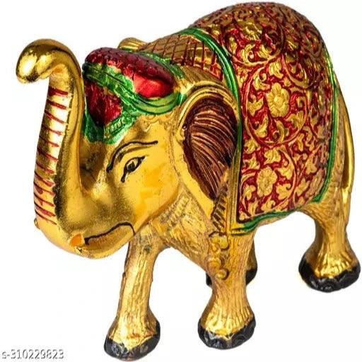 Metal Elephant Statue Gold for Your Home, Office Decorative Showpiece - 9 cm (Aluminium, Gold)