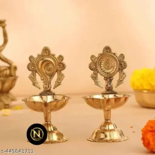 Brass Diya for Pooja, Shanku Chakra Deepam (Set of 2 Gold)