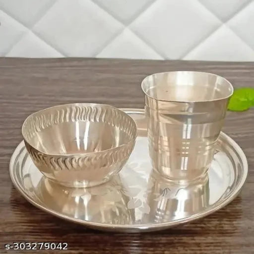 German Silver Glass , Bowl , Plate For Serving/Pooja - 270 Grams