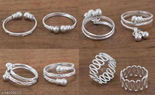 Stylish Toe Ring Adjustable Silver Toe Rings Women (4 Pairs)