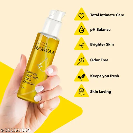 Namyaa Haldi Chandan Intimate Hygiene Wash | with Germ and Odour Protection | pH Balanced, 100g|Sensitive skin | Sulfate-free | Prevent infection | Private part ka kalapan dur krne ka intimate wash |Best intimate wash for Women