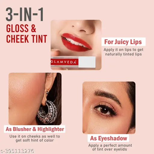 Glamveda X Rashami Desai Mini Infused Serum Lip Gloss | Love - 118 ( Brick Red ) For Soft & Dewy Lips, Glossy Finish Enriched With Vitamin E, 1.2ml, Red High Shine Waterproof Lip Gloss For Women