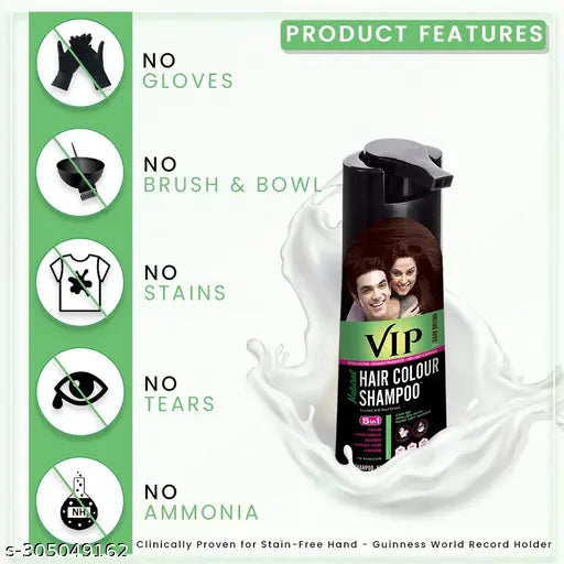 VIP Dark Brown Hair Colour Shampoo | Ammonia-Free, Lustrous Gloss | Radiant At-Home Hair Colour | 180ml
