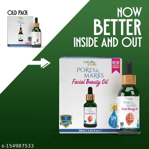 Nature Sure Pores and Marks Facial Oil with SPF 50 Sunscreen, Natural Skin Glow and Ultralight Face Care - 1 Pack (30ml)