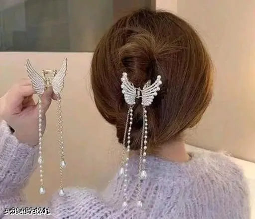 Pearl Elegant Royal Fashion Tassel Rhinestone Hair Claw | Butterfly Clip | Pins | Barrette Jaw Clamp Hair Accessories For Wedding Bridal Women Accessories