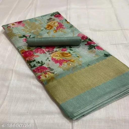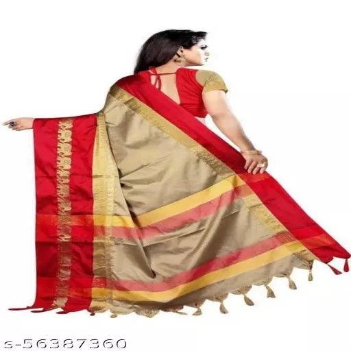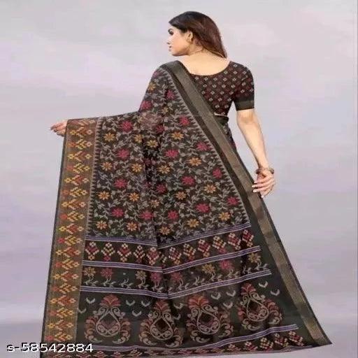 BRASSO COTTON SAREE Blend Black Brocade attractive zari patta Saree With Blouse
