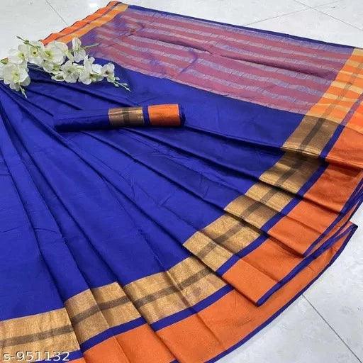 Stylish Multicoloured Cotton Saree with Blouse Piece