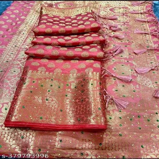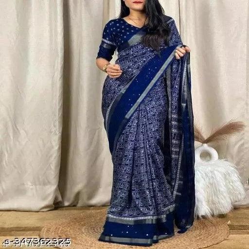Attractive Silk Blend Saree with Blouse piece For WomenPack of 2