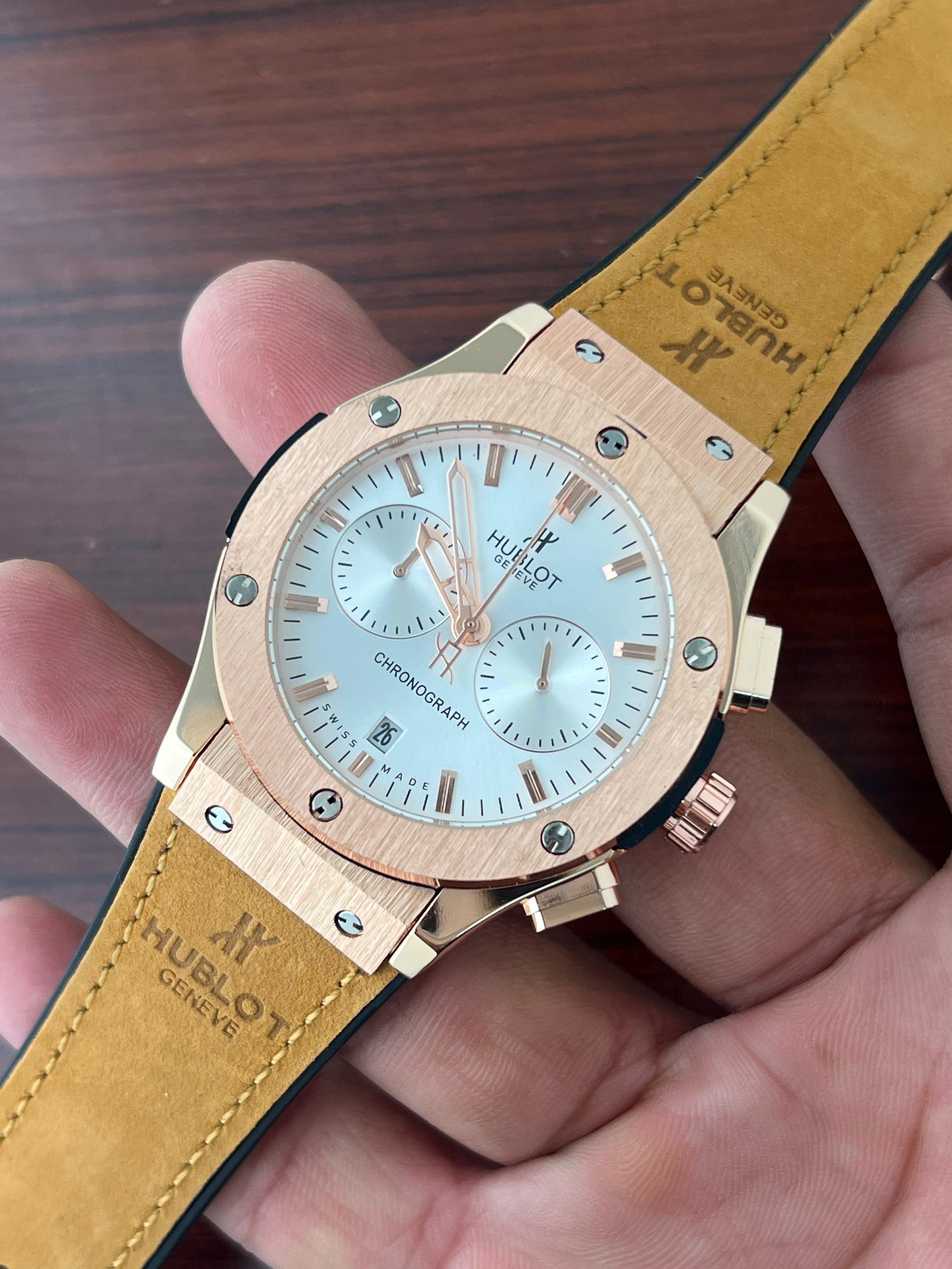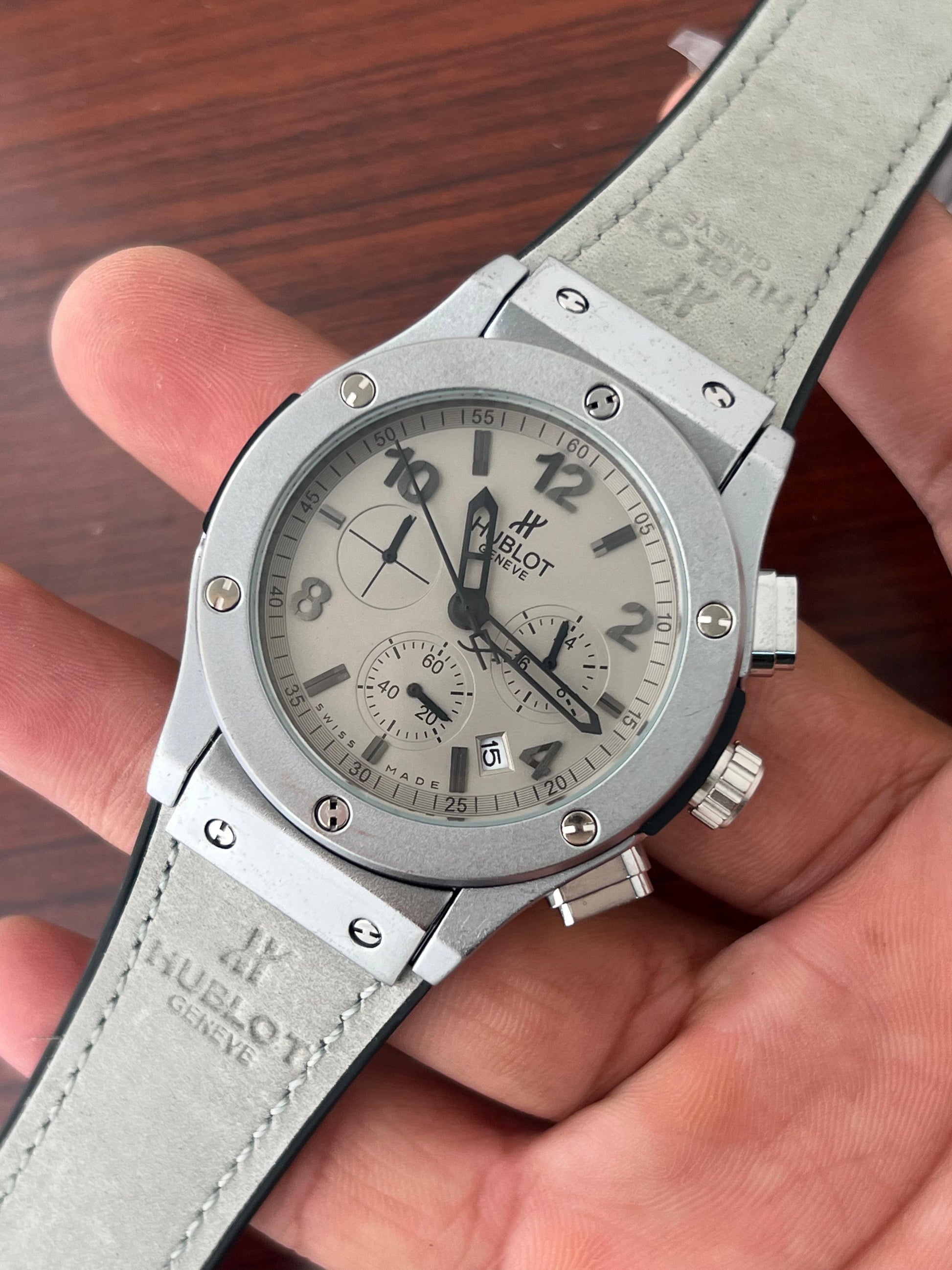 ✅ *Hublot Big Bang 5 Hand all shining Full Black, iconic Strap collection (White Dial)