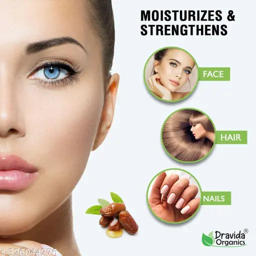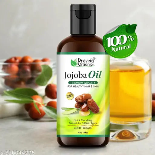 Dravida Organics 100% pure jojoba oil is derived from the seed of the jojoba (Simmondsia chinensis) shrub and is one of the most popular cosmetic oils available today. Its high stability, invigorating scent and cosmetic versatility make it ideal for all skin and hair types, and it is most commonly used to promote softer hair and skin. Jojoba oil contains many nutritional compounds, including long-chain essential fatty and fatty alcohols.