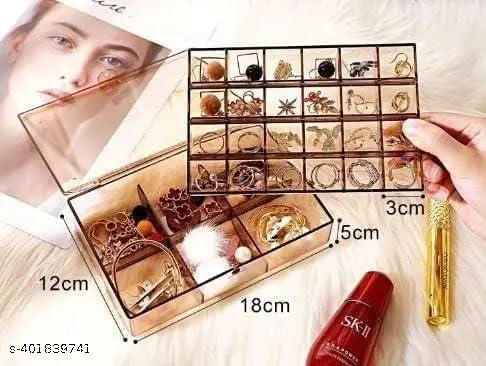 2 Layer Acrylic Jewelry Storage Box Organizer holder case with Lid for Earrings Necklaces Bracelets Rings with 24-Grid small and 6-Grid Big (1 PCS - Multicolor)
