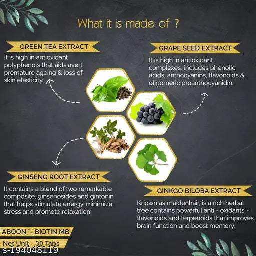 Name ABOON HAIR NAILS SKIN BIOTIN MULTIVITAMINS TAB.