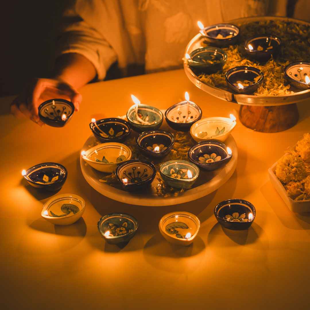 Assorted Blue Pottery Diya (Set Of 20)Assorted Blue Pottery Diya (Set Of 20) Assorted Blue Pottery Diya (Set Of 20)