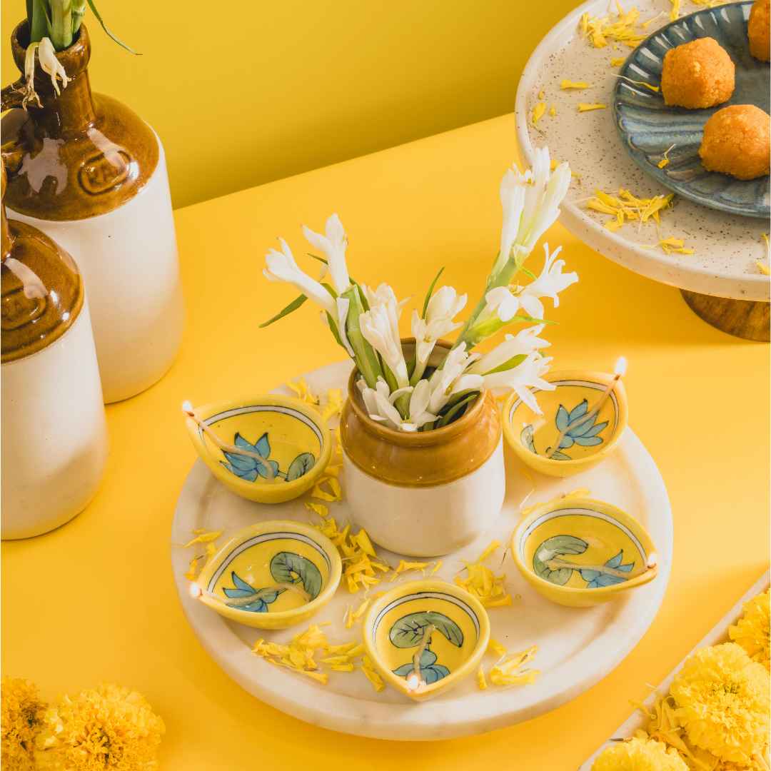 A radiant collection of handcrafted diyas, featuring intricate patterns and vibrant colors, perfect for enhancing your decor with a warm, inviting glow.Material Quartz Powder, Glass Powder, Katira, Multani MattiCare Clean with damp clothCountry of Origin IndiaMarketed & Packed by Atrangi Lifestyle Private Limited, Gurugram, Haryana 122003Customer Care Atrangi Lifestyle Private Limited, Gurugram, Haryana 122003Contact +91 9867344756Email hello@atrangistudio.com