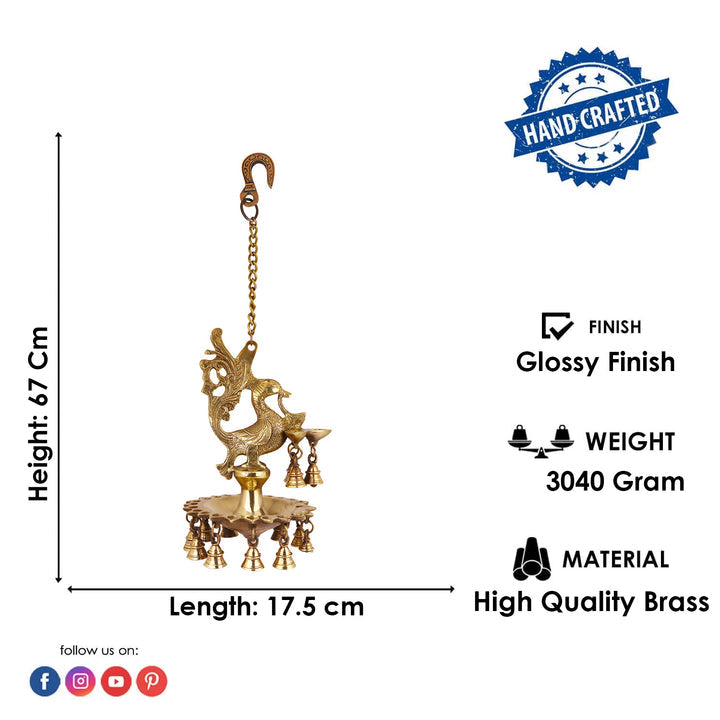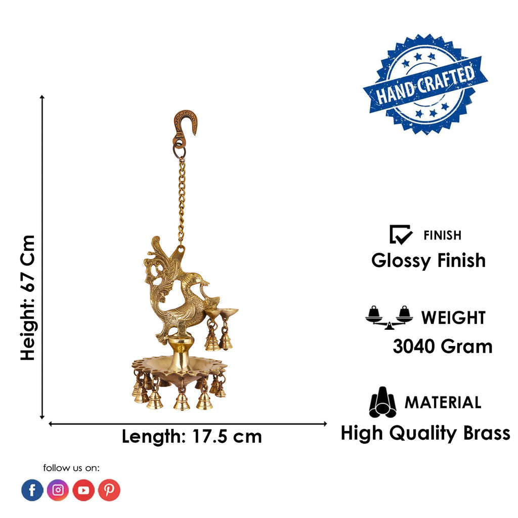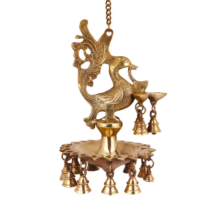 Pure Brass Peacock Diya Hanging with Bells