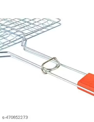 Name : charcoal grill Stainless Steel Square Roaster Tandoor Barbeque, Roti, Papad Jali Griller With Wooden Handle Silver With Silicone Spatula And Oil Brush Set.