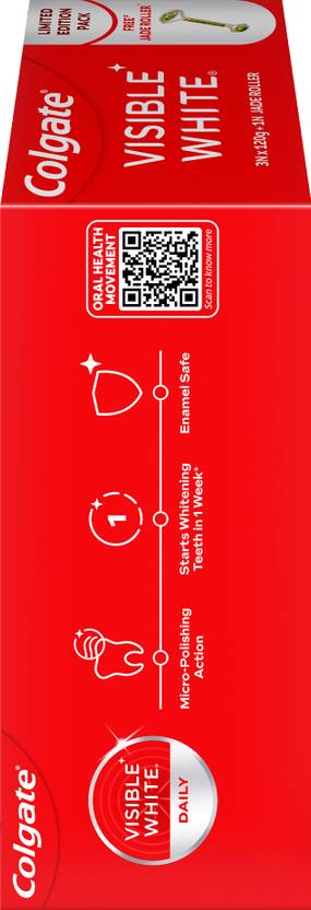 Colgate Visible White Teeth Whitening Toothpaste, 360g, 120g X 3 and Jade Roller Toothpaste (360 g, Pack of 4)