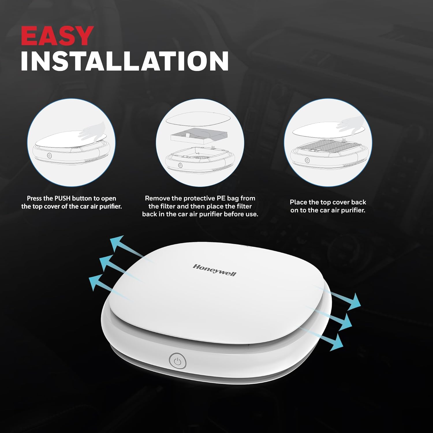 Honeywell Move Pure3 Car Air Purifier, Hepa filter & Formaldehyde which removes 99.9% dust & smoke, CADR upto24 m³/h with 3xUSB ports, 2 Years Manufacturer Warranty