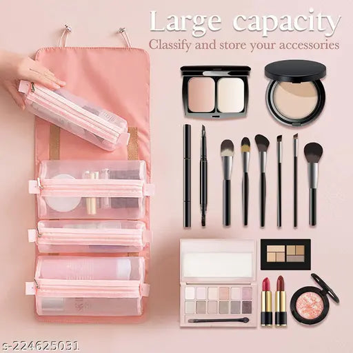 Name krupasadhya 4 in 1 Foldable Toiletry Bag for Travel, Detachable Makeup Pouch, Cosmetic Organizer Bag for Women (pack of 1, Multicolor).