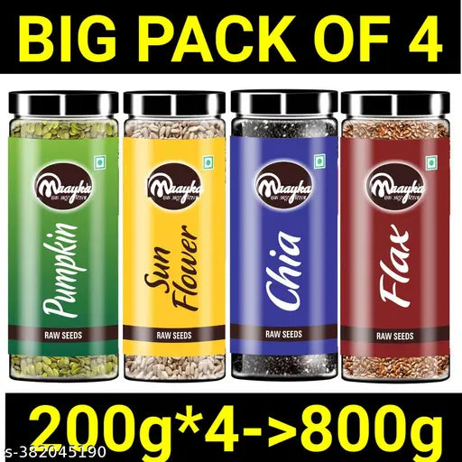 Maayka Premium | Pumpkin Seeds (200 Gram) , Raw Chia seeds (200 Gram), Flax Seeds (200 Gram) , Sunflower seeds(200 Gram)combo for Weight Loss, Strong Bones, Hair growth and other Health Benefits with Omega 3, Fiber, Calcium, Magnesium and Zinc- Combo(total - 800gm)