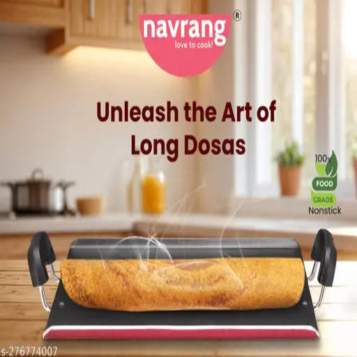 "Navrang Non-Stick Aluminium Square Patri Tawa can be used for making chapattis, omelets, parathas, pancakes, and more on a day-to-day basis. It has a length of 33cm. Its firm and strong handle make it easy to use. It uses less oil making your meal healthy. It is scratch-resistant and very easy to clean.It has a black hammer tone color which gives it an elegant look. NAVRANG Nonstick cookware is designed for low to medium heat cooking and has health benefits including less oil cooking to prepare a healthy meal, especially for people suffering from high cholesterol and diabetes. Nonstick coating allows food browning without sticking. As a Cookware surface that is extremely stable, it does not react with food because it is curated at a very high temperature. Non-Stick cured @ 430C. It also provides easy release and frictionless surfaces. Nonstick cookware with long coating life.100% Health Safe and Food Safe.100 % PFOA free. SO ABSOLUTELY FOOD SAFE. It is good for healthy cooking. Easy Clean and Easy to use Stylish cookware with Sturdy Handles. "