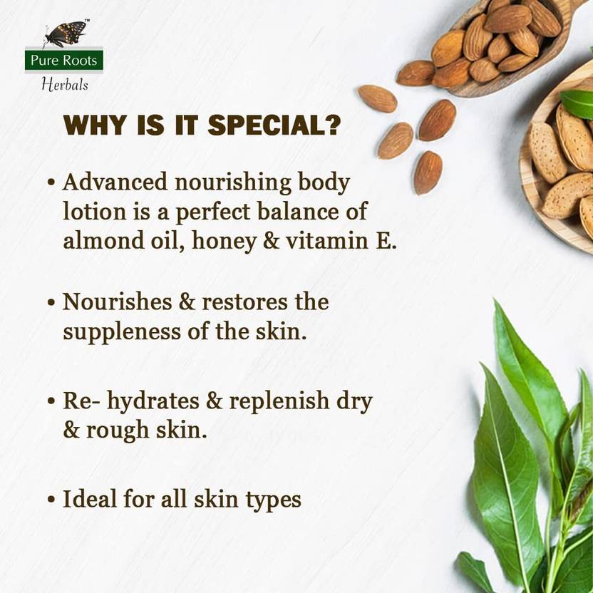 Give your skin the nourishment it deserves with Pure Roots Almond Honey & Cocoa Butter Body Lotion Combo Pack (Pack of 2, 400ml Each Total 800ml). Infused with the goodness of Almond Oil, Honey, Vitamin E, known for its natural brightening and moisturizing properties, and Cocoa Butter, famous for deep hydration, this lotion keeps your skin soft, smooth, and radiant.Nourish and hydrate your skin with this rich, creamy lotion enriched with cocoa butter. Provides deep moisture, restores softness, and leaves skin smooth, supple, and glowing. Ideal for daily use, suitable for all skin types, and keeps skin healthy and rejuvenated.