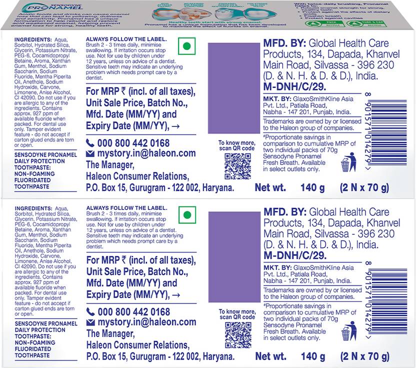 Sensodyne Pronamel Enamel Protection Toothpaste 280g (2 x 140g) Combo Pack | Daily Protection | Tooth paste for Cavity Protection & Fresh Breath | 2X Enamel Strengthening | Dentist Recommended | SLS Free.