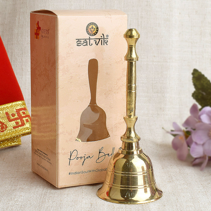The charming sound of this brass hand bell will reach out your prayers to the God and fill the atmosphere with divine sound and live music to the aarti during any Poojaceremony and also remove negative energy from your house office. Bring a shiny and beautifully crafted auspicious Pooja Bell Made up of Brass Material, Can Be Used for Worship At HomeTempleOffice, also an ideal gift for your loved one.Brass pooja bell | Brass ghanti for temple | Hindu prayer bell | Puja bell for rituals | Traditional brass ghanti | Indian pooja accessory | Spiritual temple bell | Brass bell for aarti | Decorative pooja ghanti | Exquisite brass pooja bell | Puja bell | Brass puja bell | Ghanti for temple | Hindu prayer bell | Aarti bell | Spiritual pooja bell | Temple bell | Ghanti for mandir | Brass aarti bell | Pooja ghanti online | Indian traditional puja bell | Handheld prayer bell |Buy Online Brass Pooja Bells Premium Quality - 100% Pure Brass Pooja Ghanti. Discover the enchanting collection of brass puja bells at Satvikstore.in. Explore a wide range of puja bells, including puja bells with handles and handheld puja bells. Ideal for home, mandir, and temple daily pujas, our bells are crafted with precision and feature premium designs with wooden handles. India's Largest Pooja Accessories Brand.Buy Online Brass Pooja Bells Premium Quality - 100% Pure Brass Pooja Ghanti. Discover the enchanting collection of brass puja bells at Satvikstore.in.