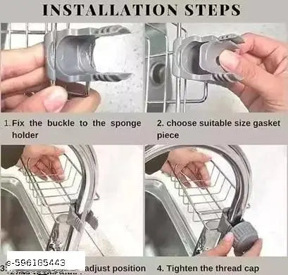 EASY TO INSTALL WITHOUT TOOLS- Kitchen faucet sponge holder is easy to install on faucet with tool-less design. no suction cups, no adhesive hooks, no drilling, no holes. Moreover, screw joint design is very steady, no worried about falling down, droops down or loose.