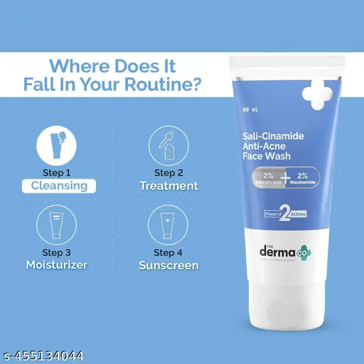 Product Name The Derma Co Sali-Cinamide Anti-Acne Face Wash with 2% Salicylic Acid & 2% Niacinamide - 80ml (Pack of 2).