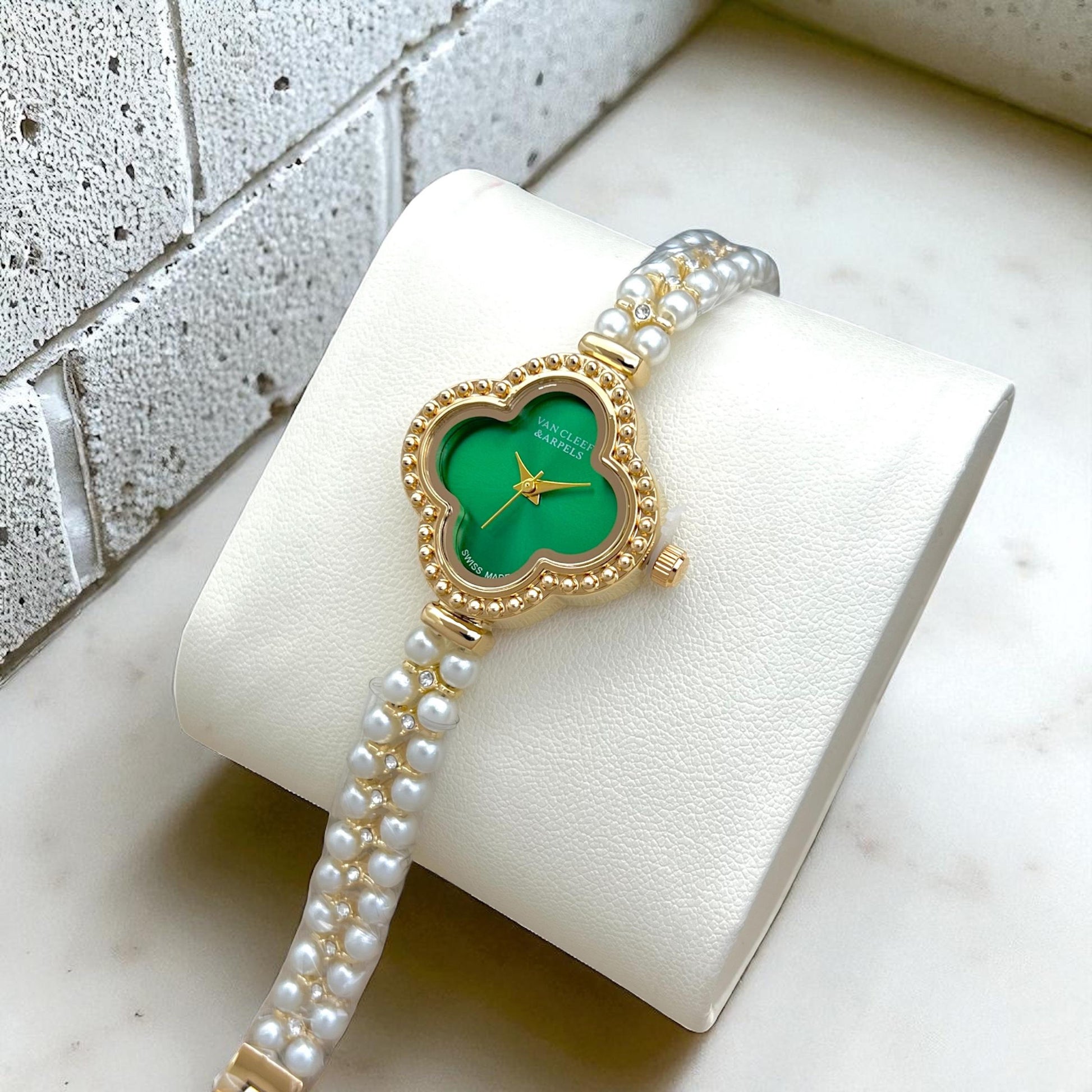 Van Cleef & Arpels Designer Pearl Strap Watch for Women.