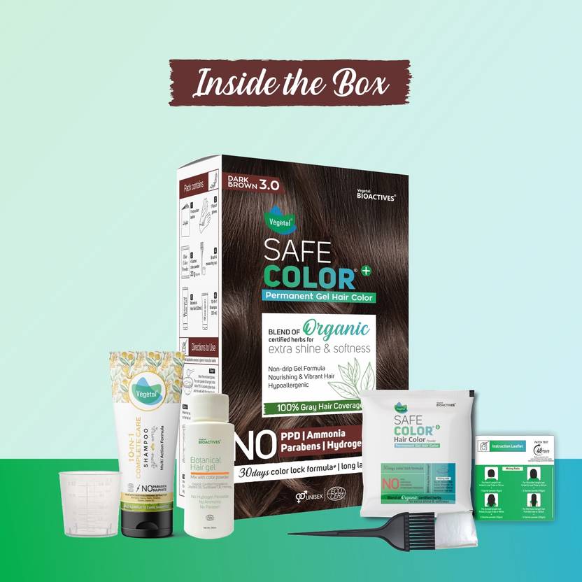 VEGETAL Safe Color Permanent Gel Hair Colour, Chemical-Free, 100% Grey Coverage , Dark Brown 3.0, 70ml.