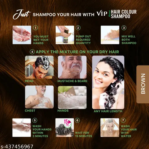 Product Name VIP Hair Color Shampoo 180 ml x 2 Natural Brown | Ammonia free | Long lasting 3 in 1 instant grey hair color solution
